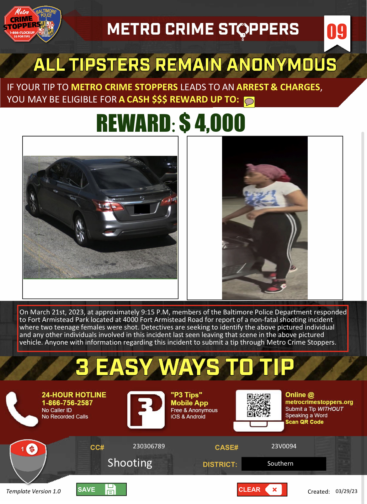 Anyone with information is urged to contact Metro Crime Stoppers of Maryland at 1-866-7Lockup.